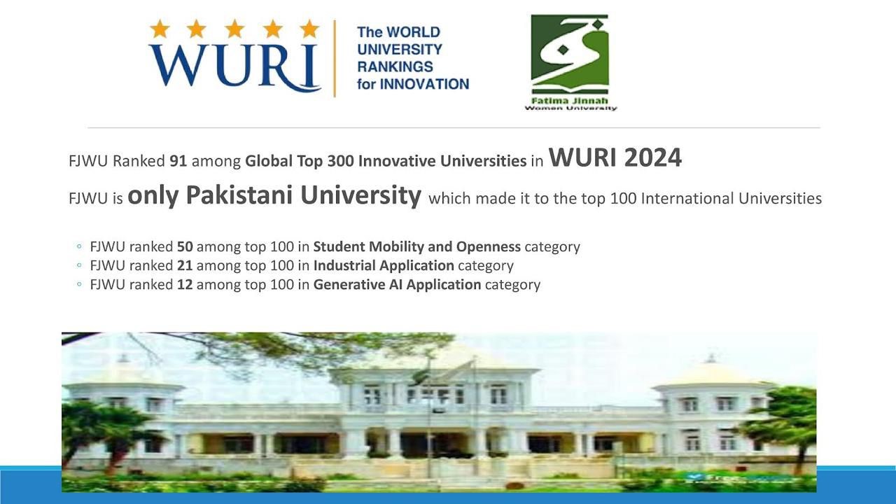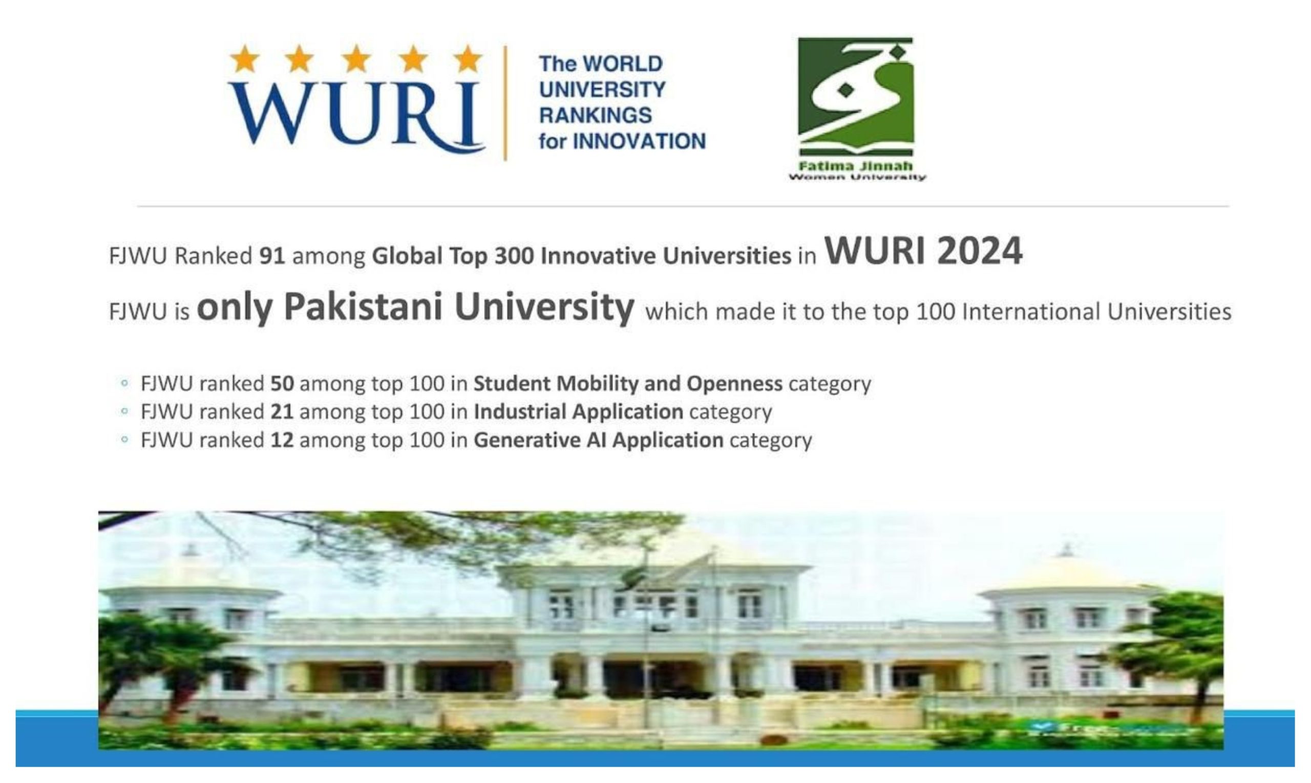 Fatima Jinnah Women University Shines Globally: Ranked Among Top 100 in Three Categories in WURI 2024!
