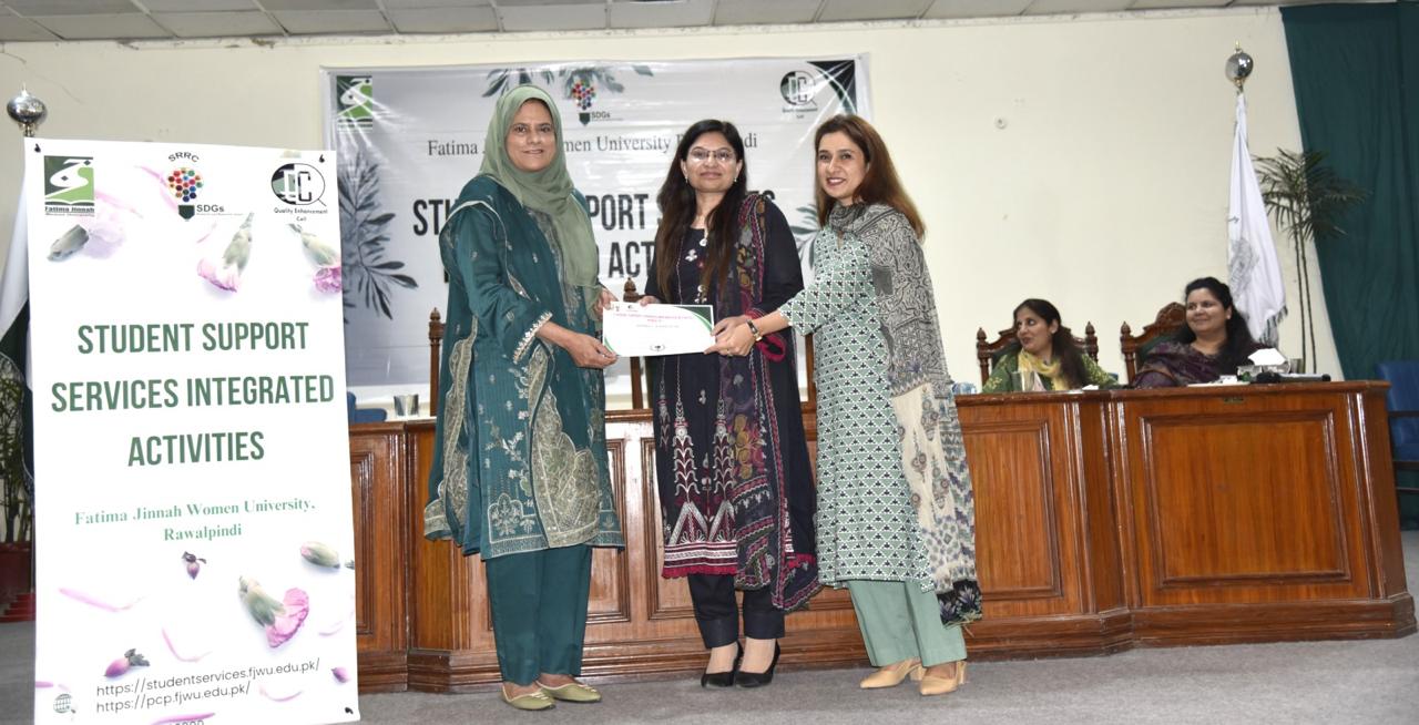 Quality Enhancement Cell (QEC), Fatima Jinnah Women University, actively participated in the Student Support Services Integrated Activities – Phase III, held on October 27, 2025, under the patronage of Vice Chancellor Prof. Dr. Bushra Mirza (Pride of Performance; T.I). The event was organized as part of the Higher Education System Strengthening Activities (HESSA) Component C: Student Support Services. Prof. Dr. Bushra Yasmin, Director QEC and Institutional Lead (Executive Track – Student Support Services HESSA), delivered the Opening Session and Acknowledgement of HESSA Support. She introduced the objectives and structure of the program, highlighting the transformative role of HESSA in enhancing FJWU’s student support and quality assurance ecosystem.